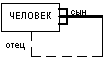 На следующем примере изображена рекурсивная связь, связывающая сущность ЧЕЛОВЕК с ней же самой. Конец связи с именем "сын" определяет тот факт, что у одного отца может быть более чем один сын. Конец связи с именем "отец" означает, что не у каждого человека могут быть сыновья.