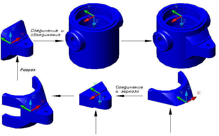 VII. Лишнюю часть отрезаем с помощью команды Разрез и объединяем это с основной частью корпуса.