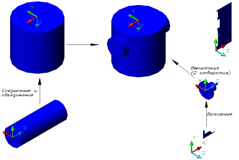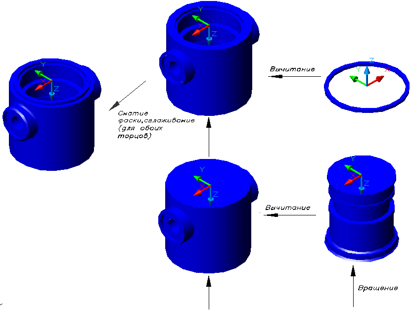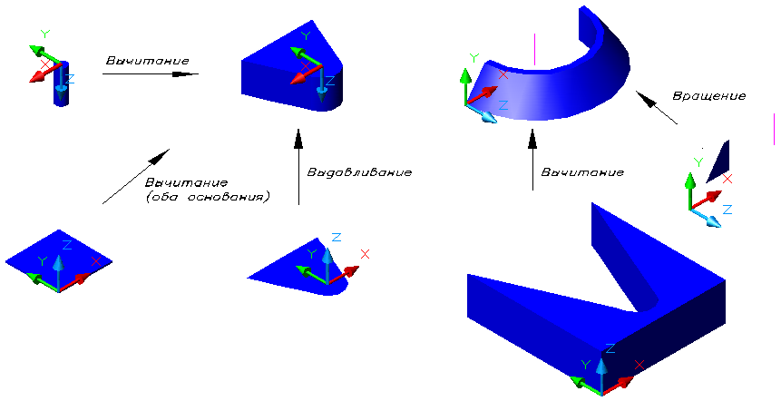 I. С помощью команды Вращать создаем тела, которые в дальнейшем будем использовать для вычитания.