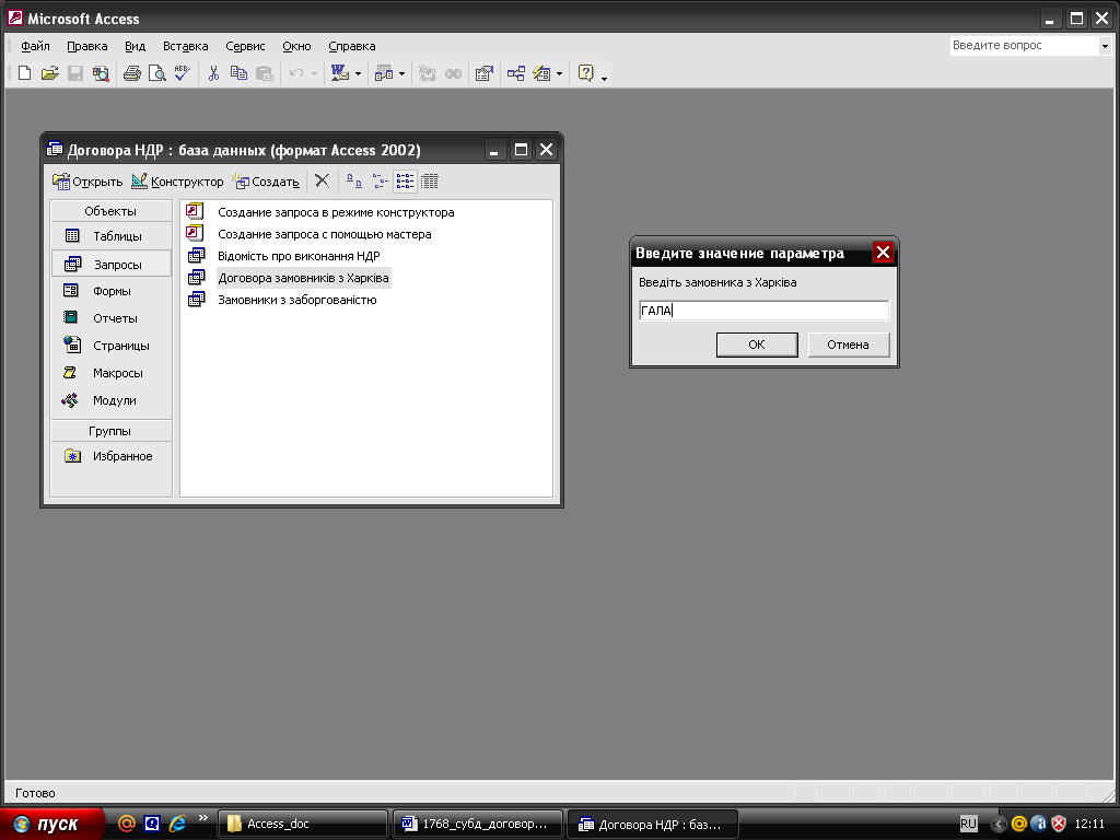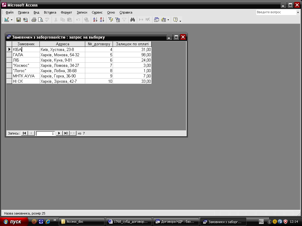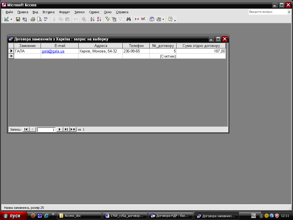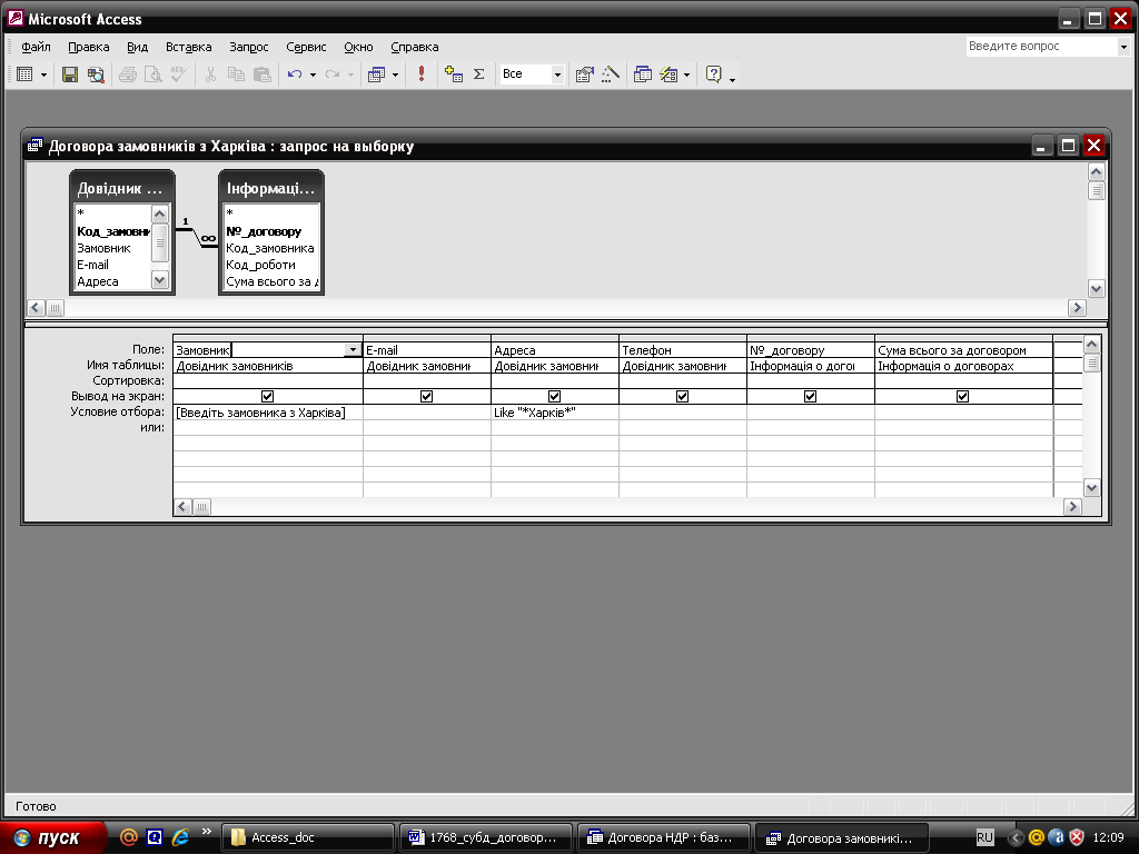 Запит 1 Договора замовників з Харківа у режимі конструктора зображений на рис.11:
