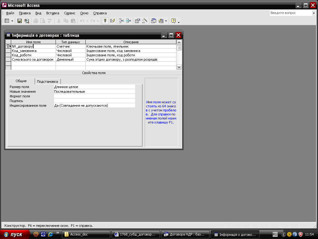 Третя таблиця Інформація о договорах у режимі конструктора зображена на рис.3.