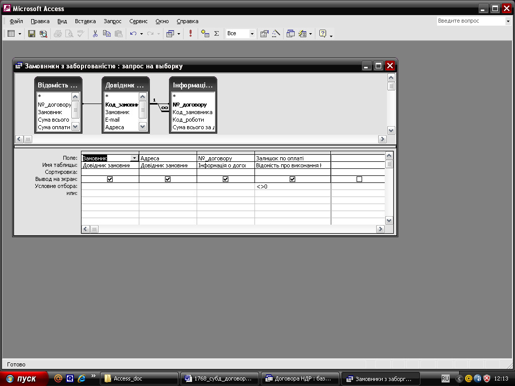 Запит 2 Замовники з заборгованістю у режимі конструктора зображений на рис.13: