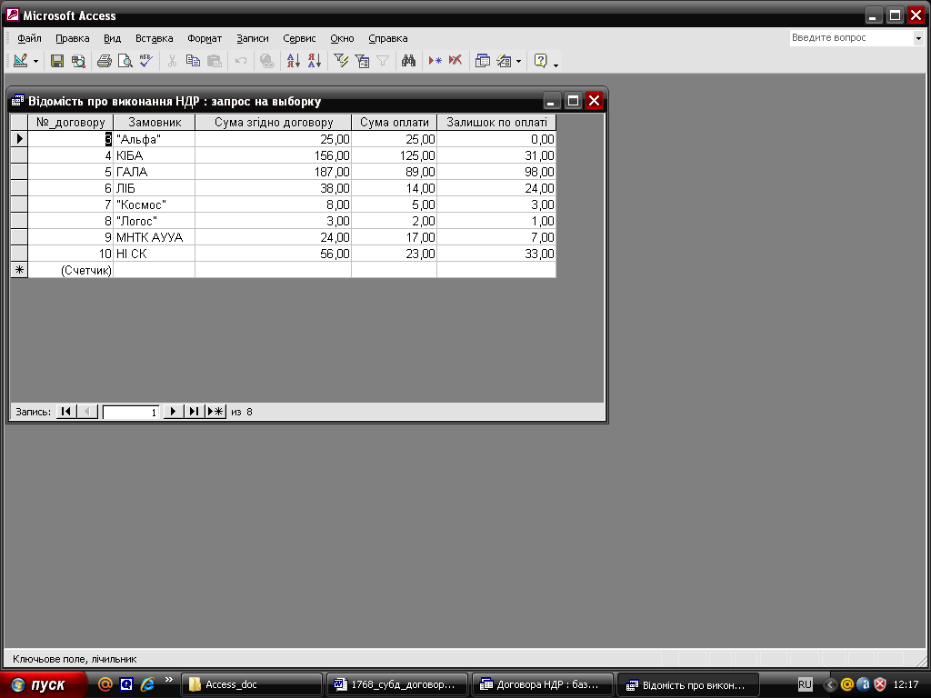 Звіт Відомість про виконання і оплату договорів НДР (рис.17):