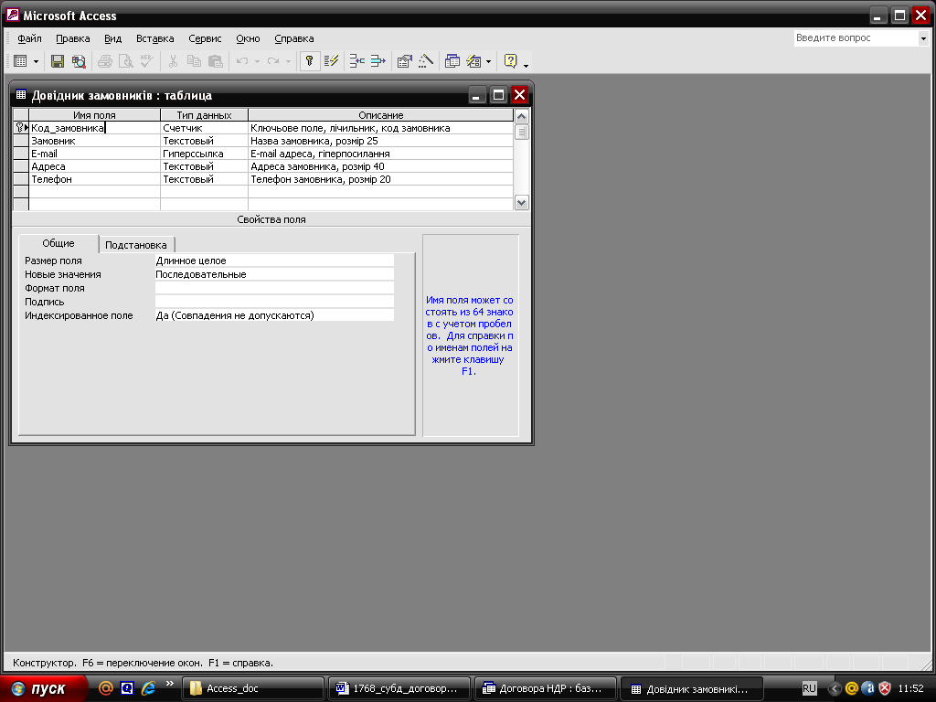 Друга таблиця Довідник замовників у режимі конструктора зображена на рис.2.