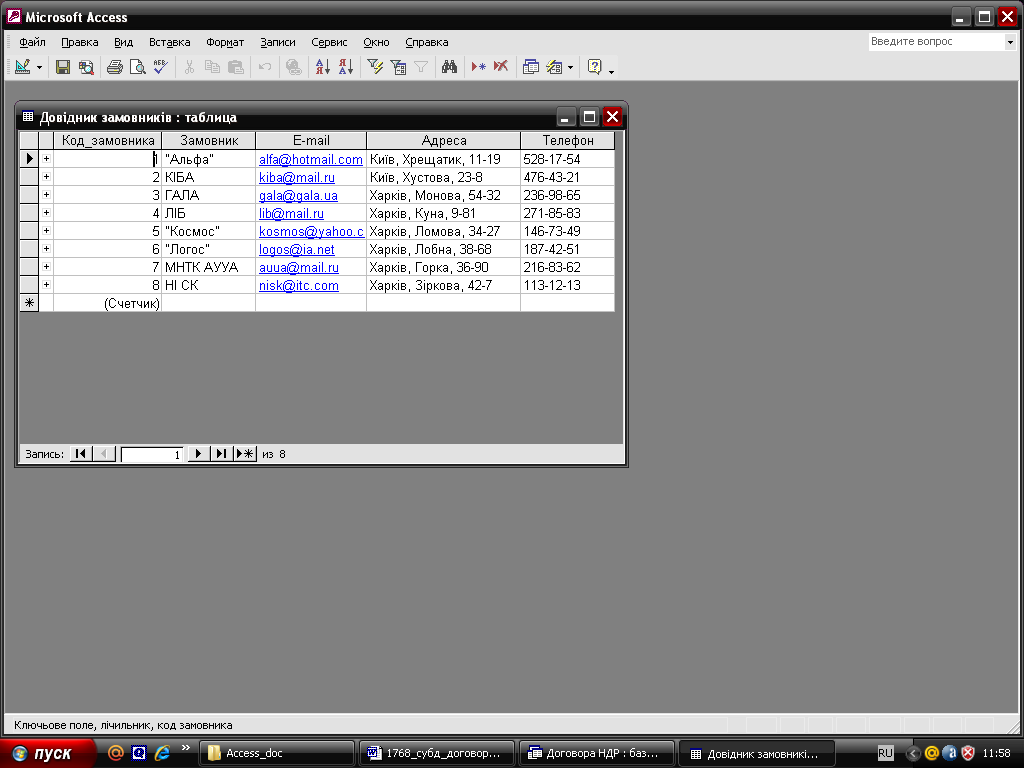 Перша таблиця у режимі таблиці зображена на рис.5.