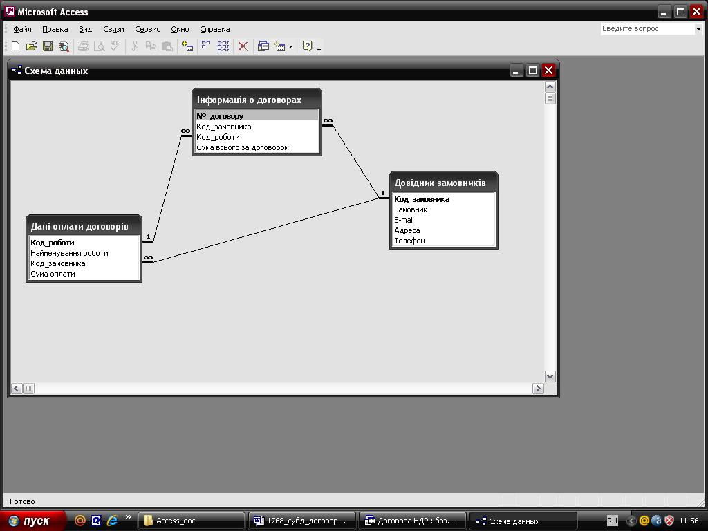 Схема даних БД „Договора НДР” зображена на рис.4.