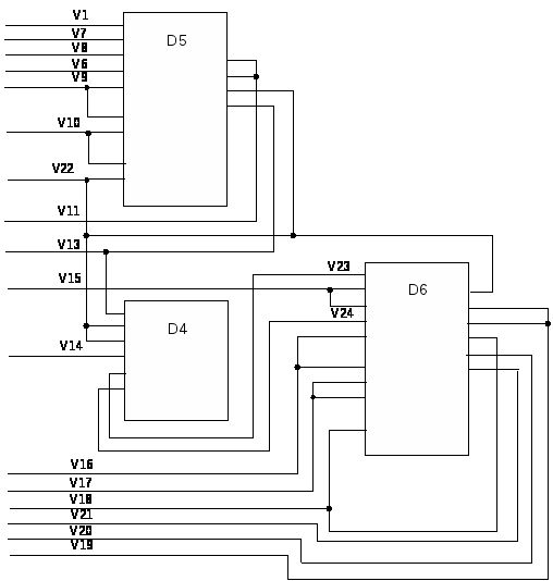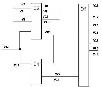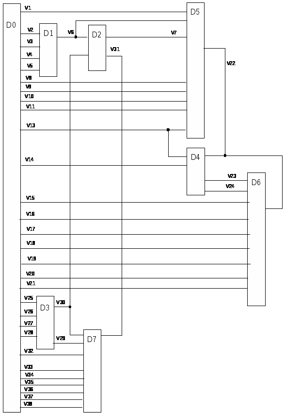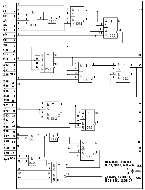 Всі елементи схеми зображуються в вигляді умовних графічних позначок, у вигляді прямокутника, всередині якого записаний порядковий номер елементу (мікросхеми). При цьому різноманітні логічні елементи, розташовані в одному корпусі мікросхеми. Контакти роз’єму, т. т. Всі вхідні і вихідні сигнали, вважаються контактами фіктивного елементу D0.