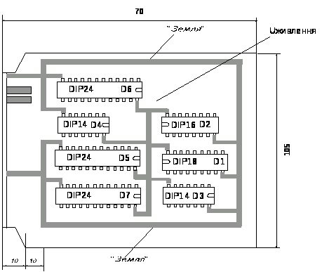 Проектування включало в себе розміщення елементів на друкованій платі, компоновки, трасування сполучень ,розподілу по шарах.