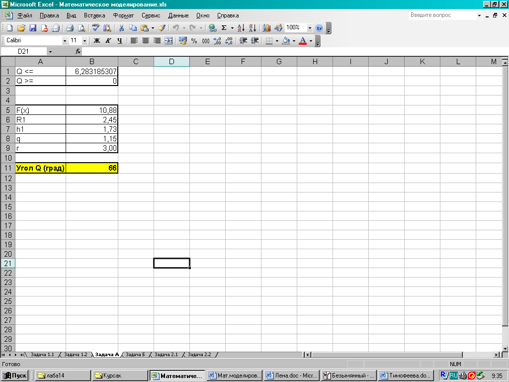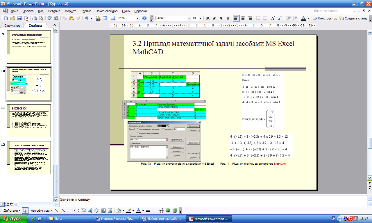 При виконання математичного моделювання ми використовували засоби MathCad та MS Excel. При правильного виконання завдання ми повинні отримати однаковий результат, в іншому випадку причину треба шукати або в підборі формул для виконання обчислення, або правопису назв, функцій та інше.