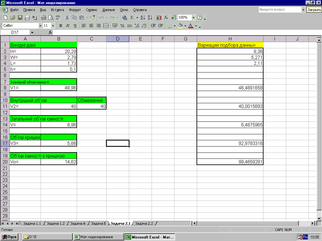 Для вирішення задачі в MS Excel скористаємося функцією Пошук рішення, у якому встановимо обмеження для обчислення результатів пошуку, щоб скоротити діапазон пошуку.