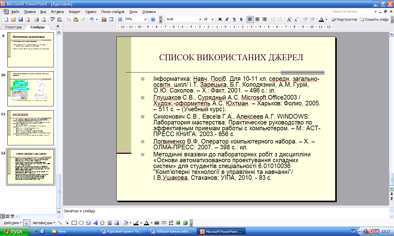 Методичні вказівки до лабораторних робіт з дисципліни «Основи автоматизованого проектування складних систем» для студентів спеціальності 6.01010036 "Комп'ютерні технології в управлінні та навчанні"/ І.В.Ушакова, Стаханов: УІПА, 2010. - 83 с.