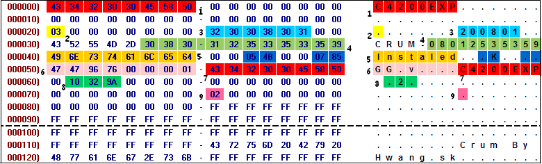На рисунке 27 представлена прошивка с чипа картриджа Samsung SCX-4200. В ней описано содержание ячеек памяти.