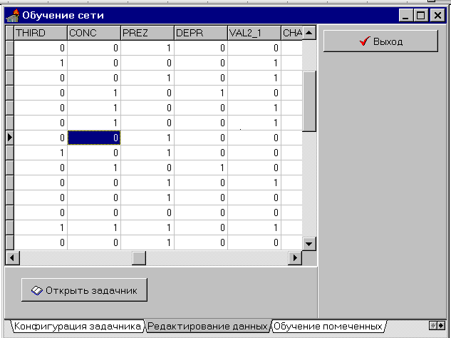 Для более детального уяснения механизма интуиции искусственных нейронных сетей при решении психологических задач, характеризующихся чрезвычайно высокой размерностью пространства входных сигналов, требовалось также создание программной модели нейроимитатора с оптимизацией объема нейронной сети для решения конкретной задачи.