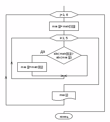 if(abs(matr[i][j])>abs(mas[j])) mas[j]=matr[i][j];