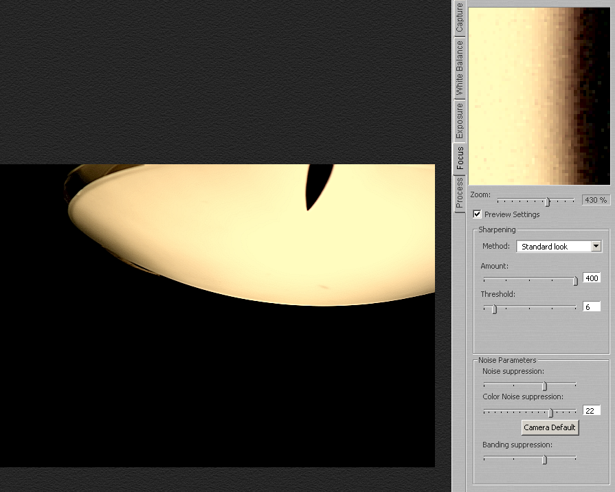 Удаление шума в RAW-конверторах осуществляется так же, как и в редакторах изображения – наложением «нерезкой маски». Но, учитывая переизбыток информации на точку, это действие сопровождается значительно меньшими потерями информации. Поэтому, увеличивая экспозицию на недоэкспонированных кадрах и удаляя шум, изображение не потеряет резкость.