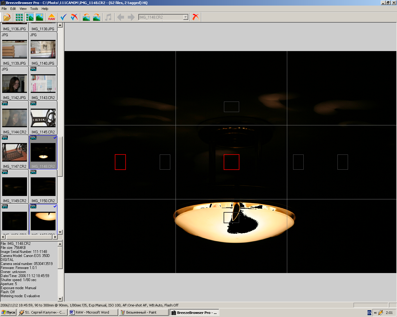 Так же здесь располагается информация, если к компьютеру подключен фотоаппарат, о чувствительности матрицы во время съемки данного кадра, статус подключения и прочая информация, передаваемая фотоаппаратом программе.