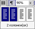 Меню «Формат» пункт Колонки… → в диалоговом окне «Колонки» в поле «Тип» выбрать число колонок → нажать ОК.