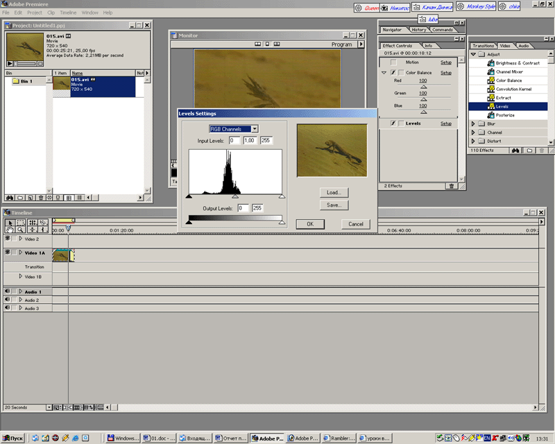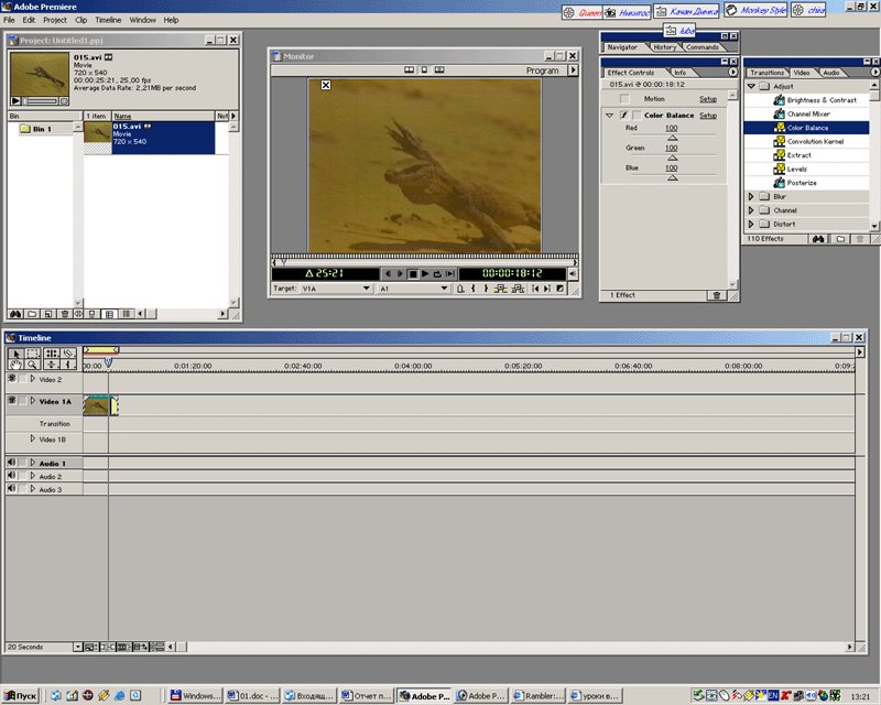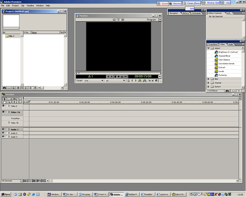 Монтаж и обработка видео файлов в Adobe Premiere 6.5
