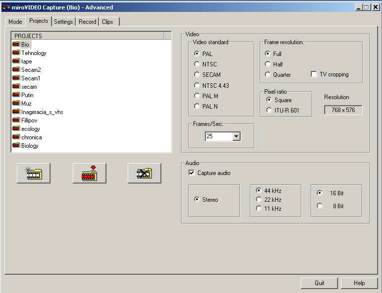Далее мы запускаем программу, идущую в поставке с видео картой, для оцифровки видео miroVIDEO Capture.