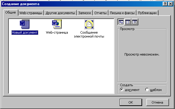 Для того чтобы создать документ, необходимо выполнить следующие операции: