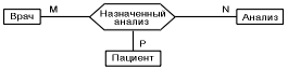 (лікар може призначити трохи пацієнтів на кілька аналізів, аналіз може бути призначений декількома лікарями декільком пацієнтам і пацієнт може бути призначений на кілька аналізів декількома лікарями);