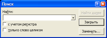 Рис 2. Диалоговое окно Поиск