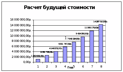 Результаты решения задачи представлены в таблице 4. Динамика роста стоимости показана в рисунке 5. Таблица 6 содержит расчетные формулы к решению задачи в пакете Microsoft Excel.