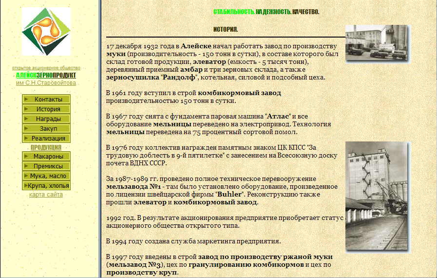 Разработка web-сайта ОАО "Алейскзернопродукт" имени С.Н. Старовойтова