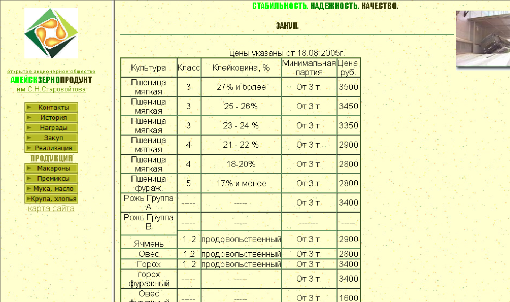 разработка web-сайта Оао "алейскзернопродукт" имени С.Н. старовойтова