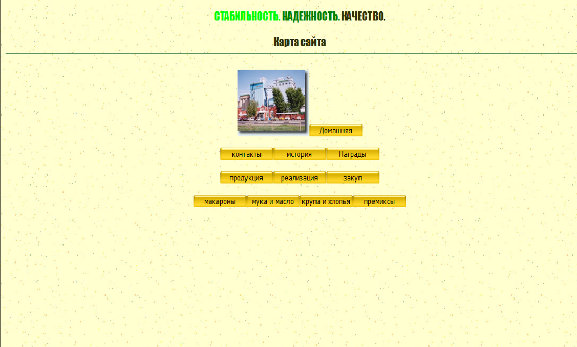 Для упрощения навигации использованы закладки, позволяющие перемещаться с выбранной темы к конкретному месту на странице. (Например: "продукция"->"макароны"->"приобрести"->выход на место макарон на странице заказа продукции).