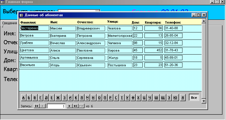 Адреса_клиентов.Кнопки – макрос по выбору читателей по заданной первой букве фамилии.
