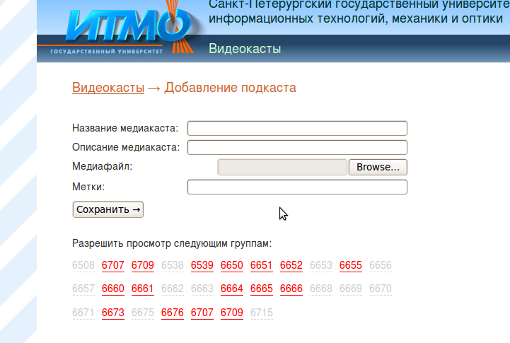возможность назначать группы студентов к просмотру определенных видеокастов.