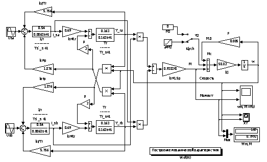 Рассмотрено математическое описание обобщённой асинхронной машины и приведены уравнения для моделирования АД в неподвижной системе координат. По этим уравнениям составлена схема модели АД и проведён анализ переходных процессов в АД и сняты динамическая и статическая механические характеристики.