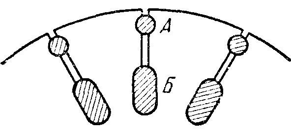 Верхняя клетка А выполнена из стержней малого поперечного сечения, а нижняя Б - из стержней большого поперечного сечения. Поэтому активное сопротивление обмотки А оказывается значительно большим, чем активное сопротивление обмотки Б (r>A>> >> r>Б>).