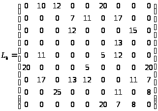 Структуру транспортных потоков в железнодорожной сети можно представить в виде графа Gh, где h-вариант организации транспортных потоков в железнодорожной сети. Перевозки в сети реализуются в соответствии со следующими параметрами, определяемыми матрицами: