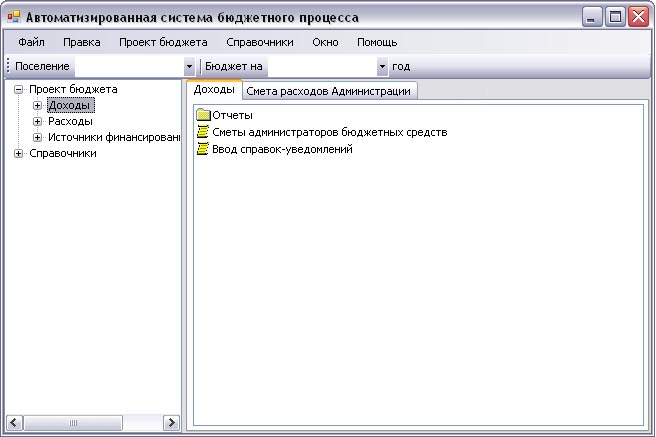 Автоматизированная система бюджетного процесса позволяет упростить и ускорить процесс составления проекта бюджета как отдельно взятого поселения, так и всей территории в целом. Архитектура автоматизированной системы бюджетного процесса, предложенная в дипломном проекте, предполагает размещение части программного комплекса непосредственно на компьютерах администраторов и распорядителей бюджетных средств, а также администраторов источников финансирования дефицита бюджета, что позволяет повысить оперативность составления проекта бюджета. Другой отличительной особенностью разработанной системы является ее модульность, т.е. в архитектуре системы изначально заложена возможность расширения ее функциональных возможностей за счет подключаемых модулей.