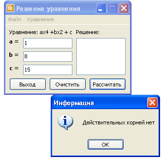 Разработка программного обеспечения для нахождения корней биквадратного уравнения