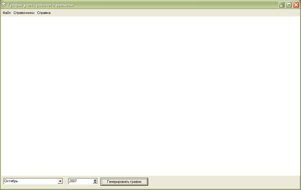 Внизу формы расположен выпадающий список для выбора месяца генерируемого графика, а также поле выбора года.