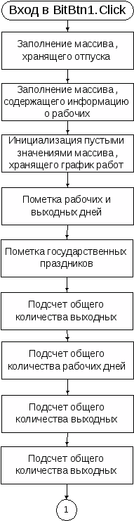 После апробирования данного приложения на предприятии можно судить о том, что в рамках курсовой работы мне удалось создать удовлетворяющую требованиям предприятия автоматическую генерацию графика учета рабочего времени, с возможностью хранения посредством Базы Данных