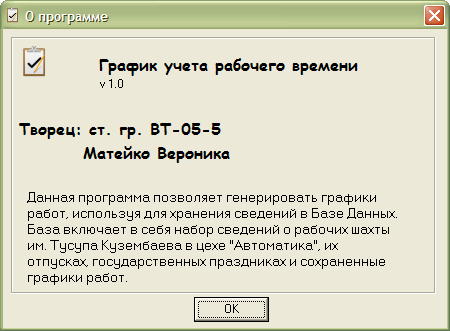Разработка программного обеспечения по управлению базой данных "График учета рабочего времени на шахте"