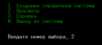 Пункт меню «Просмотр» предназначен для просмотра информации сформированной справочной системы. Выбрав соответствующий пункт меню номер 2 (рис 8)