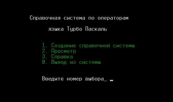 Необходимо разработать программу, представляющую собой справочную систему по операторам языка программирования Турбо Паскаль.