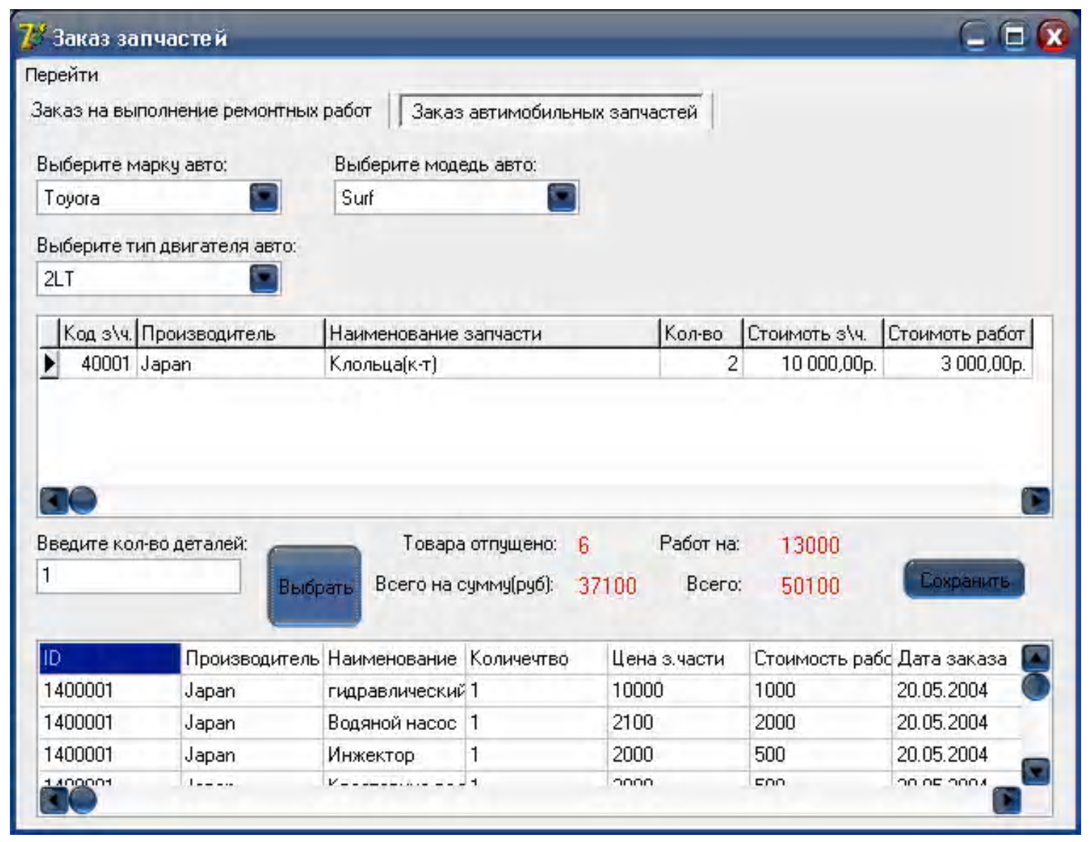 Разработка программы автоматизации процесса подбора запчастей для ремонта автомобилей
