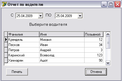 На форме выберите начало и конец временного промежутка, за который необходимо предоставить сведения, а также фамилию водителя;
