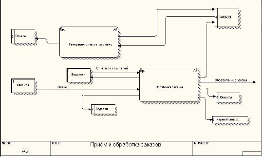 Заказы поступают по телефону к диспетчеру, он записывает необходимые данные в базу заказов. Дата и время поступления заказа диспетчер вводит сам или вводиться автоматически.