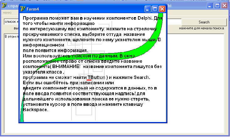 Для того чтобы удобнее и проще было работать с языком Delphi я создал справочную программу по визуальным компонентам интегрированной среды Delphi.