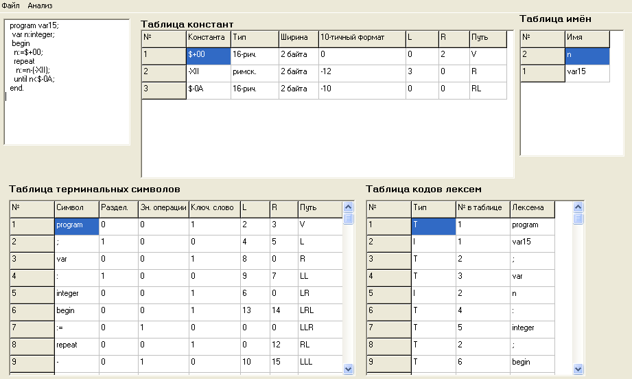 ‘var15’, ‘n’. Их следует записать в таблицу идентификаторов.