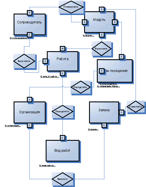 Данные сущности, связи между ними и характеризующие их атрибуты представлены в Приложении 1.