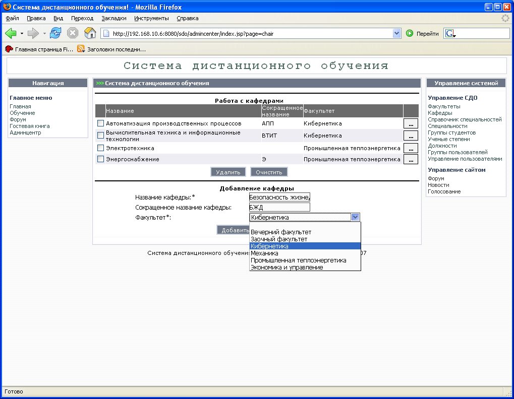 Разработка системы дистанционного обучения кафедры ВТИТ