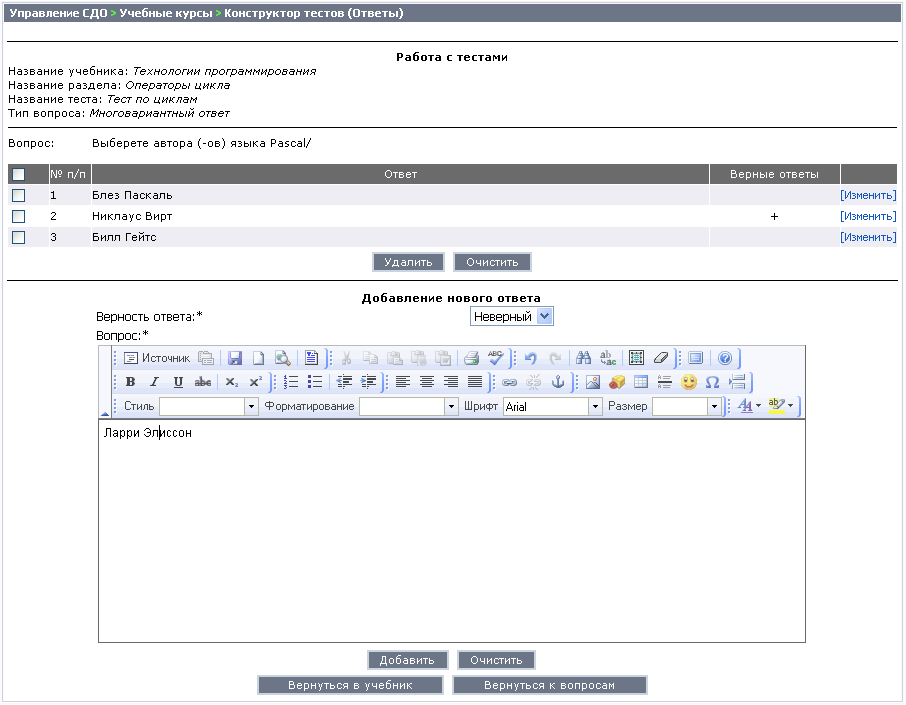 Рисунок 2.5.3.5 – Добавление ответа на вопрос